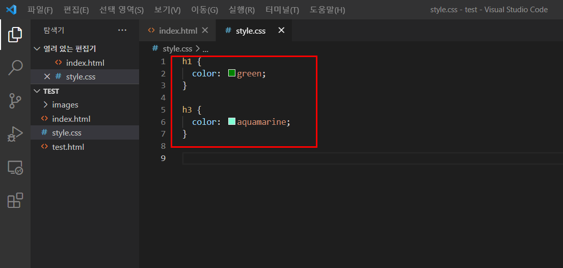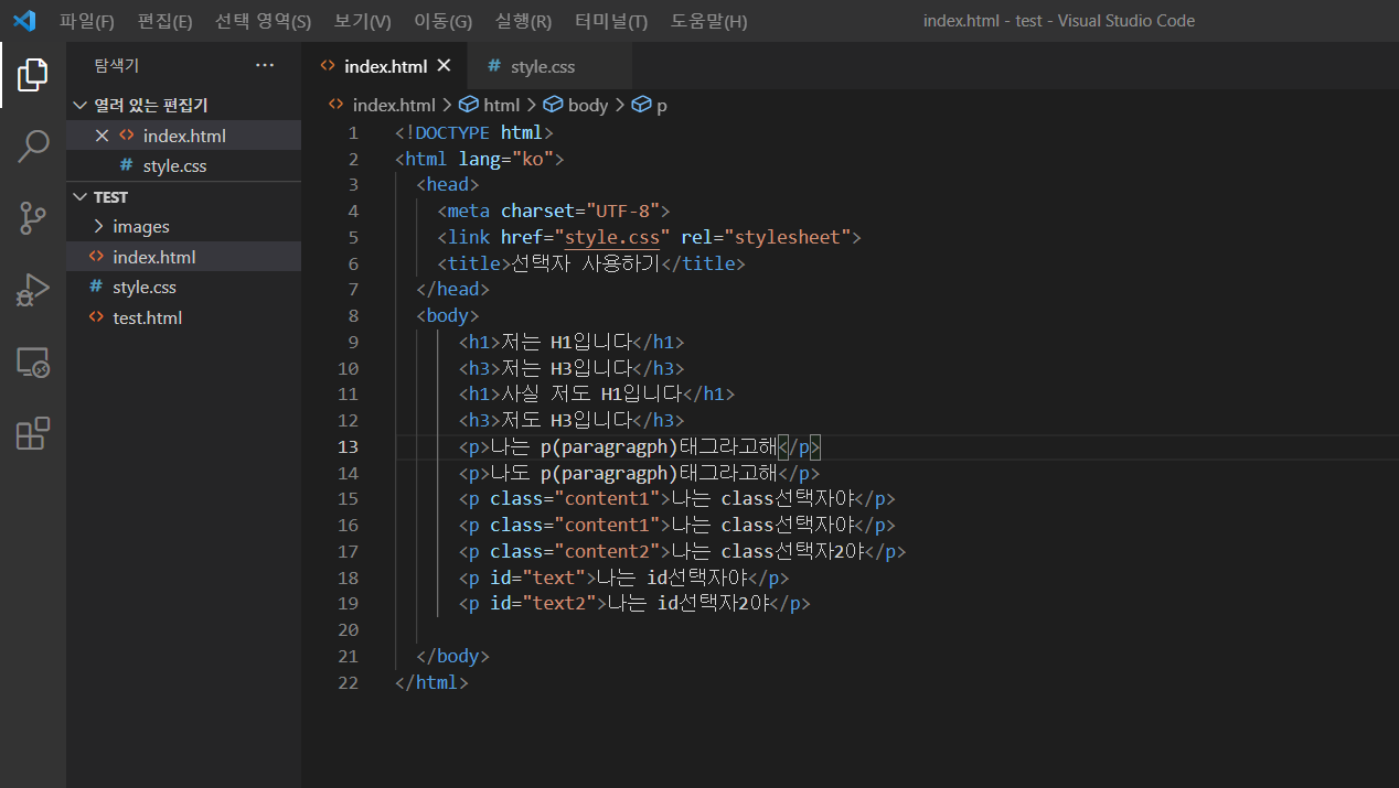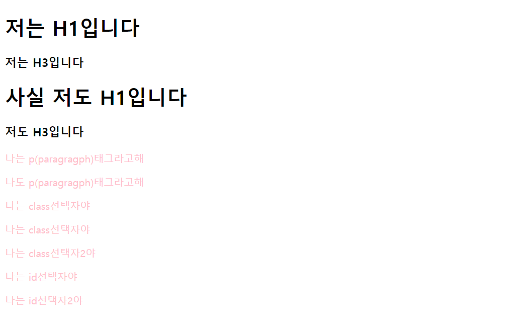이번엔 h1, h3 태그 선택자의 스타일을 지정해보겠습니다.