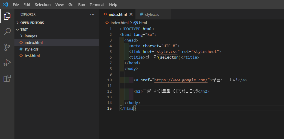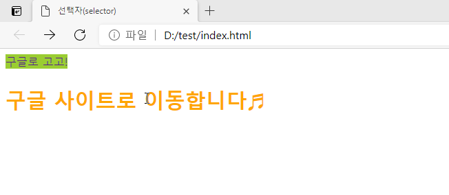 "구글 사이트로 이동합니다" 요소에 마우스를 갖다댓더니 폰크 크기가 커지고 색도 변했네요