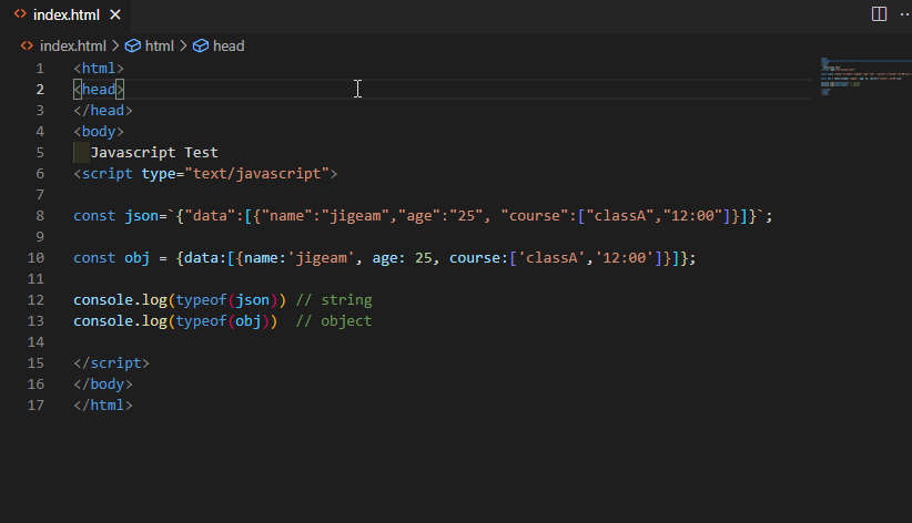 둘의 타입을 비교해보면 json은 string으로, obj는 object로 나오는 것도 확인할 수 있네요.