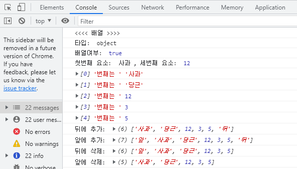 console.log("앞에 추가: ", arr)