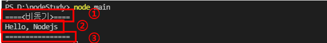 : main.js 파일을 만들고 아래 코드를 적은 다음, 터미널에서 'node main'을 쳐서 main.js 파일을 실행시켜보겠습니다.